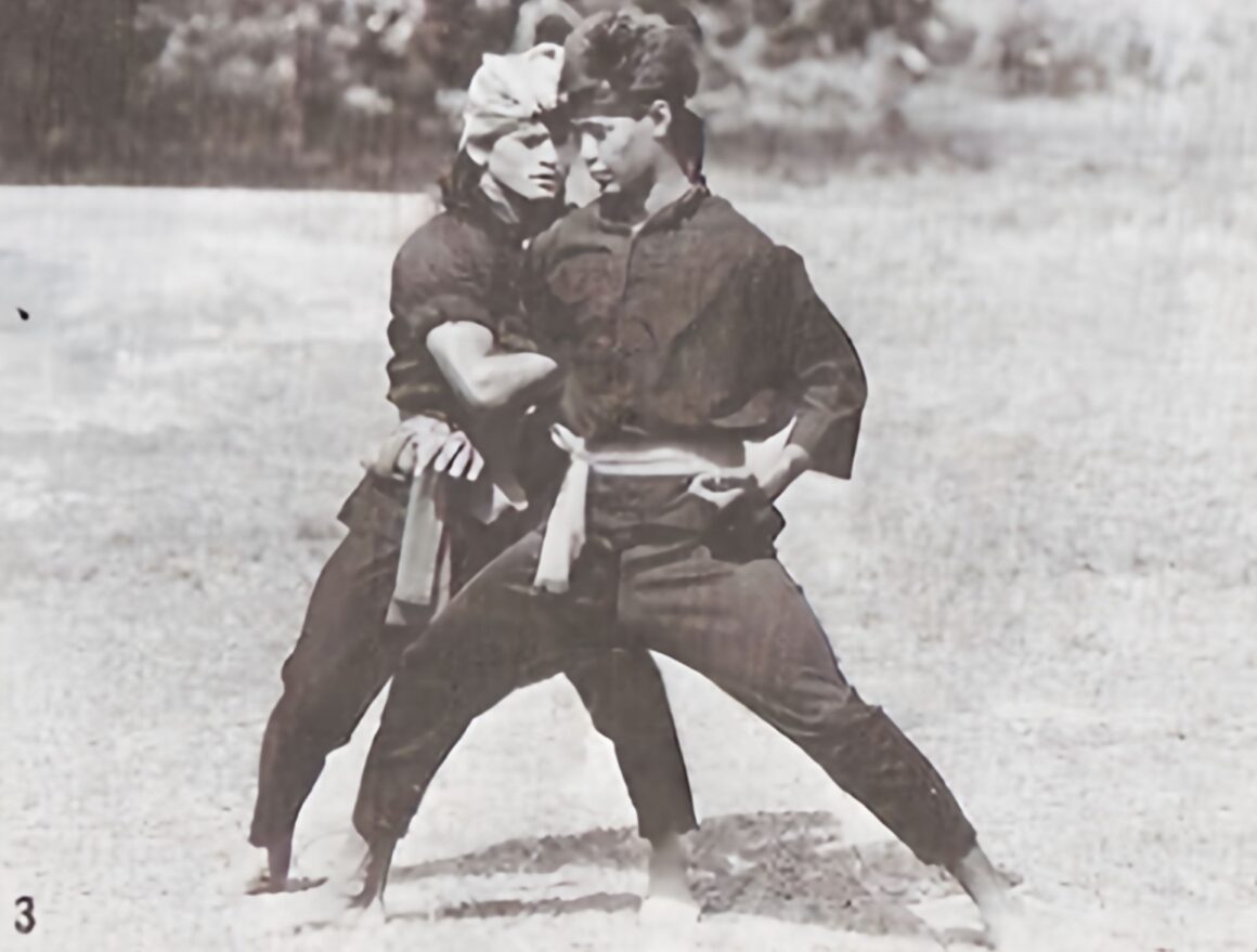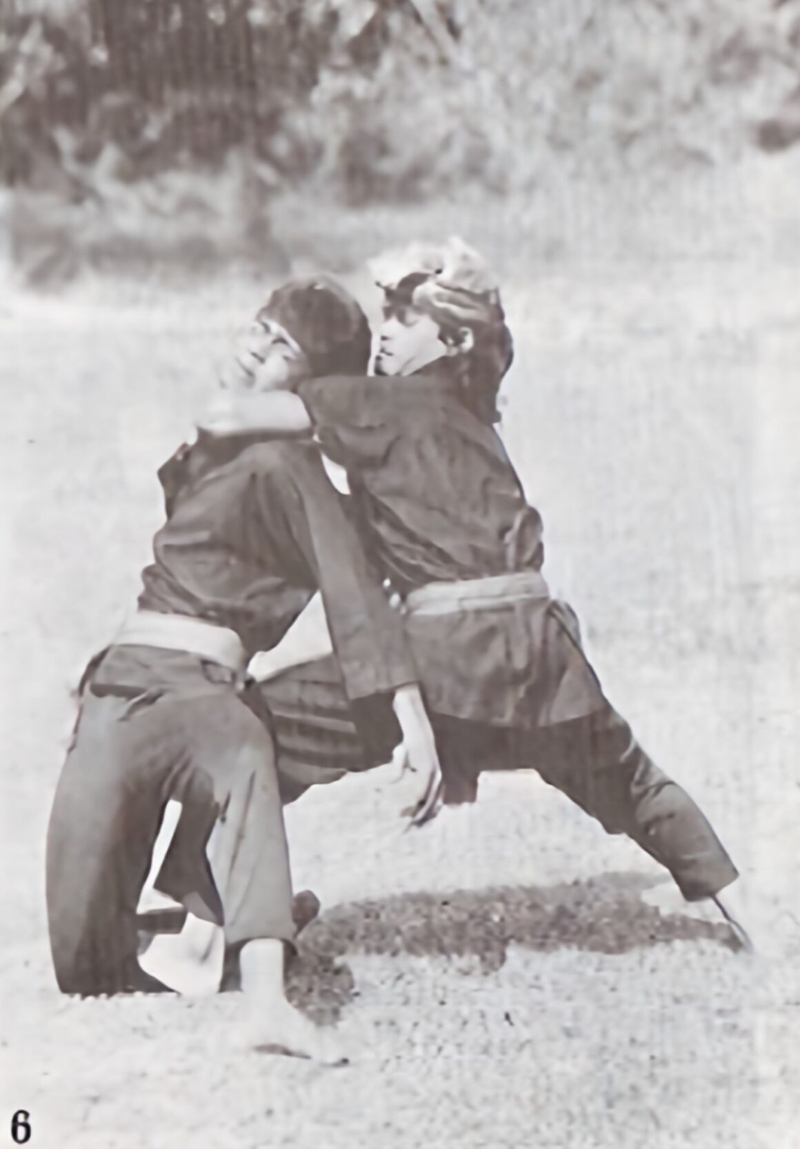 Pravou rukou udeř do ohybu jeho paže a provlékni ji za jeho záda.